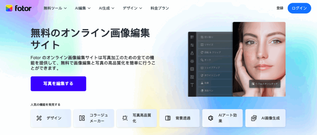 Fotorは、ブラウザ上で使えるAIアート・画像生成ツールです。無料プランでも数回生成可能で、SNS用ビジュアルなど「気軽に1枚作りたい」場合に向いています。
