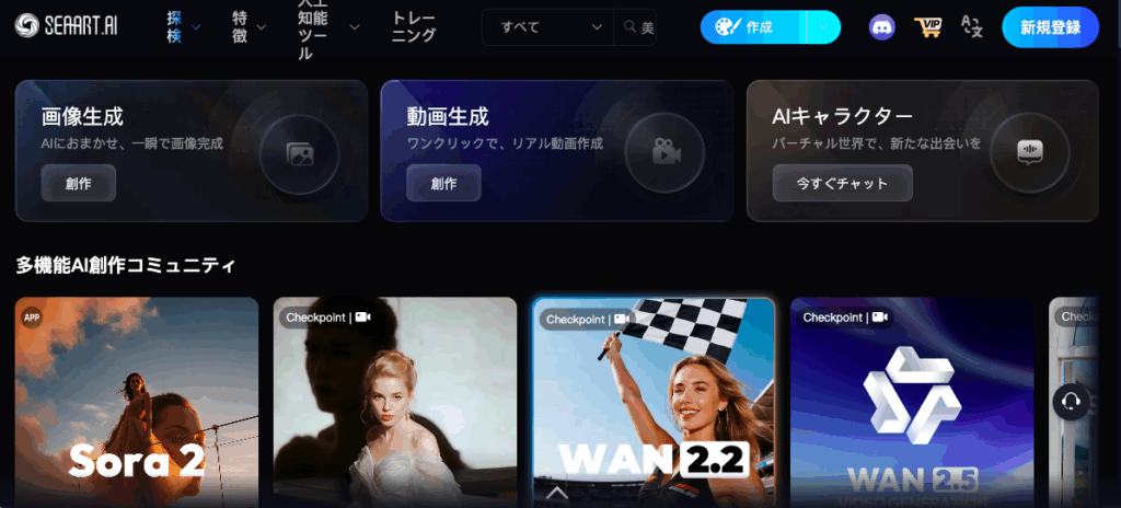 SeaArtは、日本語対応のWebツールで、初心者にも扱いやすいUIが特徴です。スタイルの選択も直感的で、「とりあえず1枚作ってみる」というハードルが低めです。実務でサクッと画像を用意したい時に便利です。
