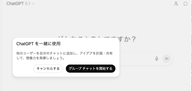 ChatGPTに 「グループチャット機能」 が登場しました!企業やチームのコミュニケーションは大きく進化します。これまでのチャットツールとは違い、複数のメンバーが参加する場にAIが“同席” し、リアルタイムで議事録をまとめたり、アイデア出しを補助したり、タスク整理まで自動で行ってくれる。まさに次世代のコラボレーション環境が実現しています。
