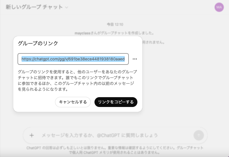 - ChatGPTアカウントを持っている人がリンクをクリックして参加