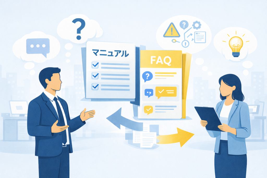 暗黙知は経験者の中には存在していても、マニュアルだけでは共有されにくいものです。FAQは、こうした現場の暗黙知を文章として整理し、誰でも参照できる形にする役割を持っています。