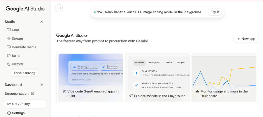 開発者にとってはコード生成やAPI連携の検証に役立つ一方で、プログラミング経験がない初心者でも文章作成・翻訳・要約などのシンプルな利用から始められるのが特徴です。つまりGoogle AI Studioは「専門家だけの環境」ではなく、AIに触れてみたい誰にとっても入口になるツールとして位置づけられています。