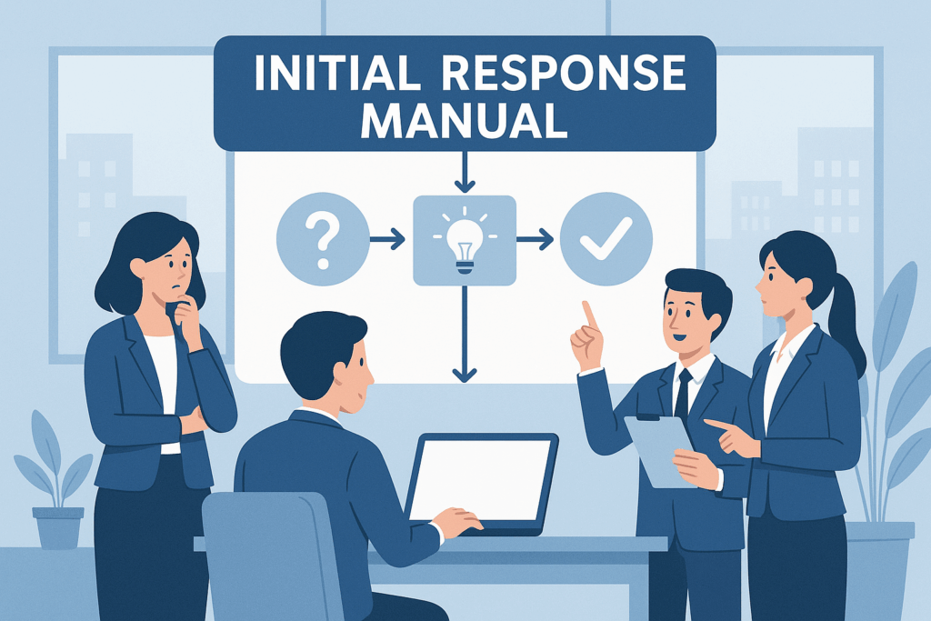 そのため、企業にとって最重要なのは 「初動対応マニュアル」 の整備です。ここでは、実際に整備すべき初動フローをわかりやすく整理します。