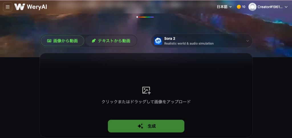 ログイン後は、作りたい動画のイメージを文章で入力するだけで、AIが自動的に動画を生成してくれます。